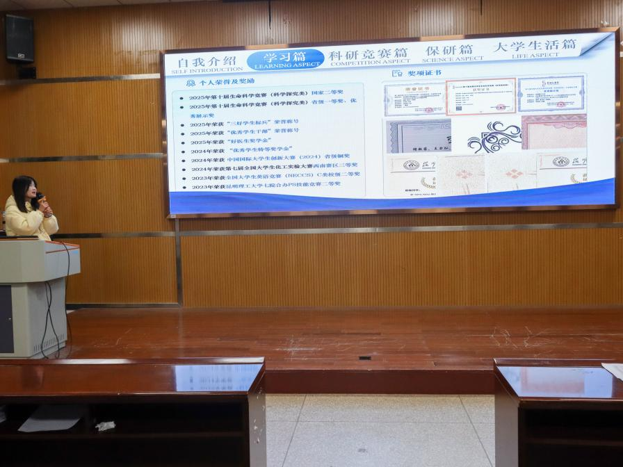 为贯彻学校《关于进一步加强全日制本科生学风建设的意见》要求,深化“学在生科”学风建设品牌内涵,充分发挥优秀学生的榜样引领作用,生命科学与技术学院于2025年12月14日举办“学在生科”系列活动之朋辈宣讲,搭建跨年级、跨专业的交流平台,营造勤学善思、互帮互助的优良学风。
