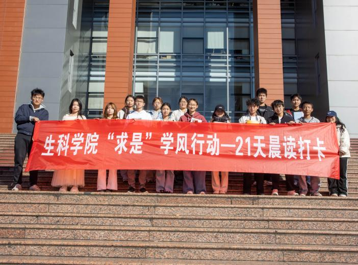 此次活动的开展,不仅引导学生珍惜晨间时光夯实学业基础、提升综合素养,更以21天坚持培养自律品格,进一步营造浓厚“崇实笃学、求是创新”的优良学风,为“学在生科”主题注入持续动力,助力学院学风建设走深走实,为人才培养筑牢根基。