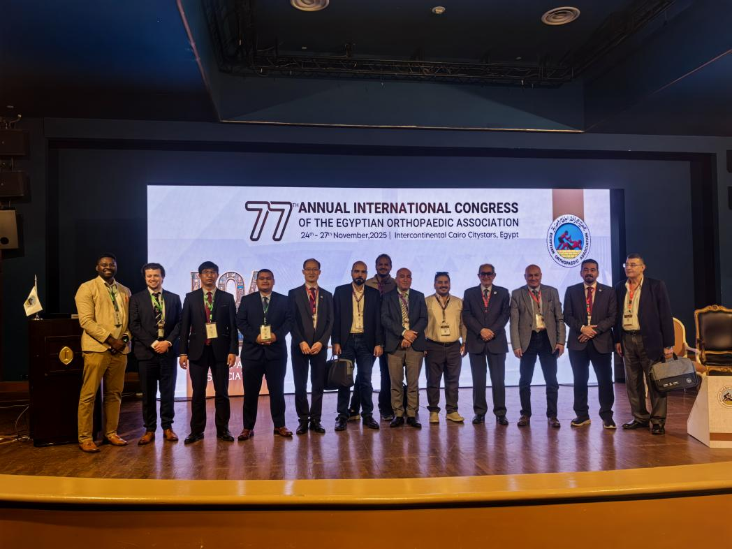 第77届埃及国际骨科学会(EOA)于2025年11月24日至27日在开罗隆重举行。作为中东及北非地区规模最大、影响力最广的骨科盛会,本届会议吸引了来自中国、美国、英国、德国、法国、日本、澳大利亚、沙特阿拉伯、埃及等全球多地逾3000余名骨科专家学者齐聚一堂,共同探讨创伤骨科、关节外科、肢体重建外科、足踝外科、基础研究等领域的最新研究成果与临床前沿进展,以期共同推动全球医学发展进步。本次盛会一共400场学术演讲与讨论。