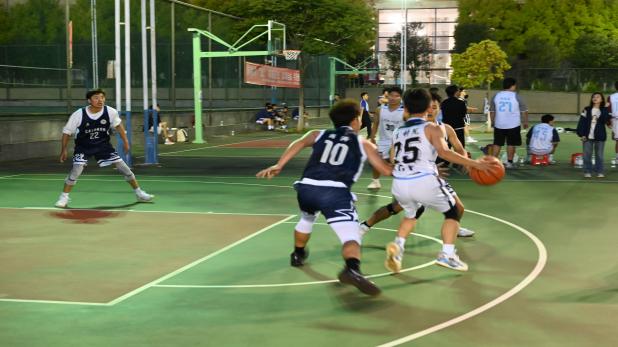 本次比赛中,女子组则采用半场3v3赛制,每节8分钟,共3节,缩短场地范围与比赛时长,降低运动强度的同时,更注重球员间的传切配合与技巧展现,充分调动女生参与积极性;男子组采用标准全场5v5赛制,每节10分钟,共4节,严格遵循国际篮联规则,考验团队战术配合与体能储备。