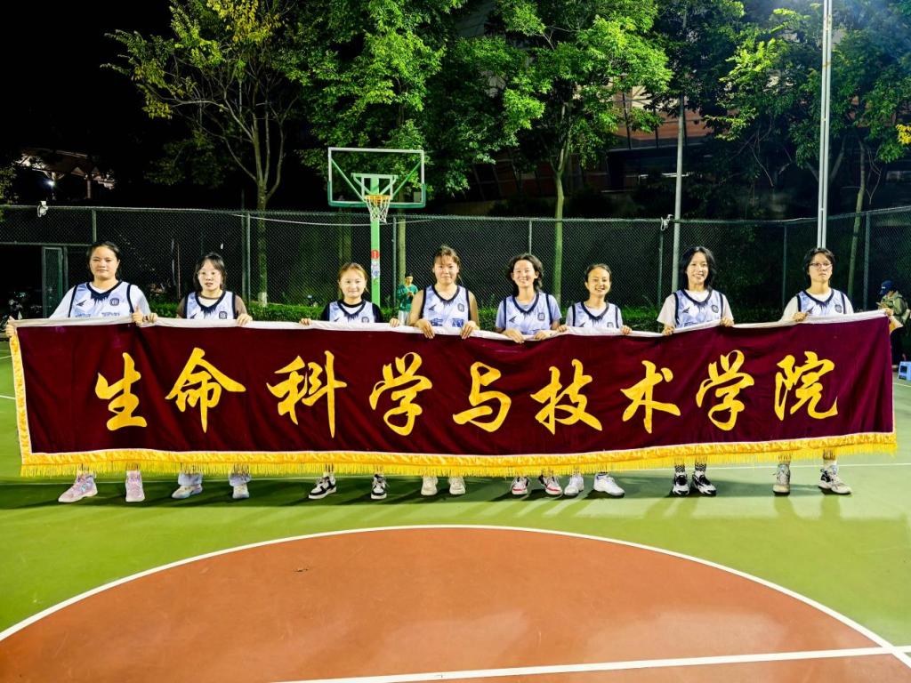 2025年10月9日晚,昆明理工大学“三好杯”篮球赛在恒园篮球场举行。生科学院男篮对战冶能学院男篮,生科学院女篮对战医学院女篮。