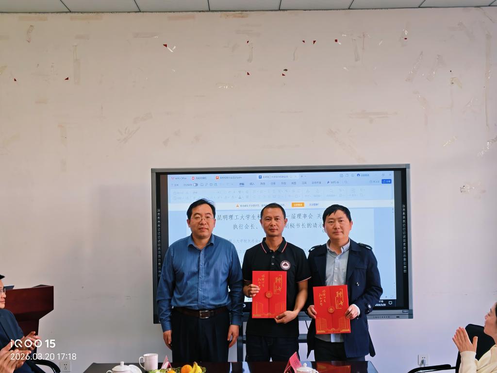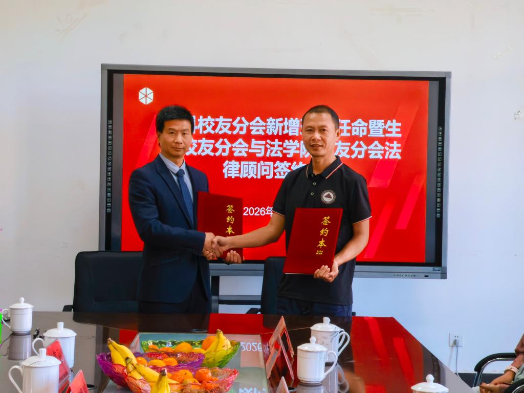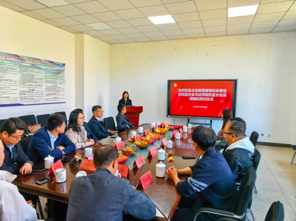 春和景明,万象更新。一次签约,一纸聘书,为校友会的发展注入了新的活力与保障。春风拂面,生机盎然。2026年3月20日下午,“生科校友分会新增理事任命暨生科校友分会与法学院校友分会法律顾问签约仪式”在昆明理工大学呈贡校区生命科学与技术学院A304会议室成功举办。生科校友分会秘书长刀元军、副会长史岁龙、邹晶、徐正有、理事崔尹赡,法学院校友分会会长陆志明、秘书长刘晓军、顾问朱素明、监事长毕加艳、副会长鲁选超、晋银涛、理事王凯、张高见、秘书处陈加玲、段婷婷等双方校友分会理事会成员齐聚一堂。学校校友总会代表张祎颖老师出席本次仪式。生命科学与技术学院党委书记杨野、副书记樊亚宇,法学院党委书记方文龙、副院长吴满昌莅临活动现场,与校友们共同见证这一重要时刻。