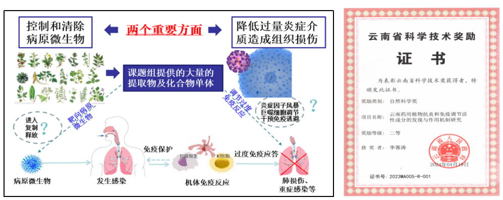 (2) 解码中药“清热解毒”理论科学内涵,成果支撑6项民族药开发,推动云南生物医药创新与乡村振兴,彰显中医药服务"健康中国"的科技价值(获云南省自然科学二等奖)。